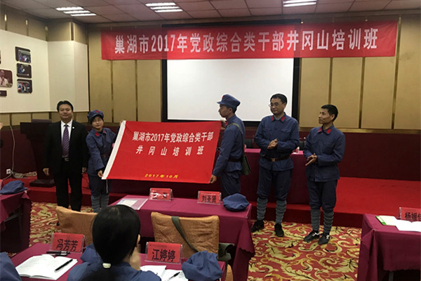 10月30日,巢湖市委黨校2017年黨政綜合類干部培訓(xùn)班37位學(xué)員赴青原井岡山革命傳統(tǒng)教育學(xué)院開展為期一周的異地學(xué)習(xí)培訓(xùn)。31日上午舉行開班儀式,青原井岡山革命傳統(tǒng)教育學(xué)院院長郝立志,中共巢湖市委常委、組織部長、統(tǒng)戰(zhàn)部長王勁,分別作動(dòng)員講話,并為培訓(xùn)班授班旗。
