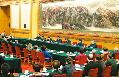 王滬寧、劉延東、劉奇葆、許其亮、栗戰(zhàn)書出席座談會。