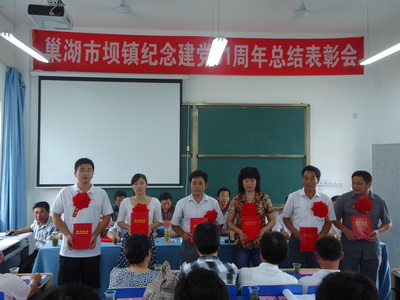 四是表彰先進,創先爭優。30日上午,壩鎮召開紀念建黨91周年總結表彰會。鎮黨委書記彭立蘭代表鎮黨委向全鎮1033名黨員表示親切慰問和節日的祝賀,向受表彰的9個先進黨支部、8名優秀黨員干部和18名優秀共產黨員表示崇高的敬意。并號召全鎮上下要認真學習他們的先進事跡和精神實質,進一步保持和發展黨的先進性,以更加昂揚向上的精神風貌、更加出色的工作業績,不斷開創我鎮科學發展、跨越發展的新局面!