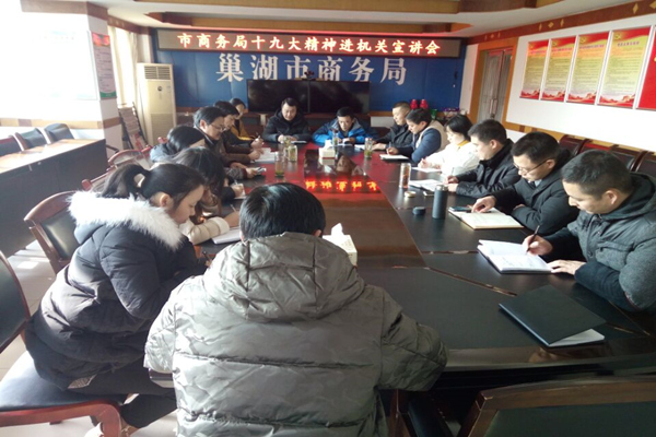為深入學習宣傳貫徹黨的十九大精神,1月15日下午,市商務局舉辦十九大精神進機關宣講會。黨組副書記、副局長李世平同志作宣講報告,市商務局機關全體干部職工參加宣講會。