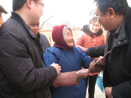 慰問中,還給80歲以上老人送去慰問金600元,90歲以上老人送去慰問金800元。(張邦水)