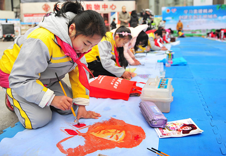 讓我們的舉止更文明——開展“學雷鋒精神—爭當巢湖文明小使者”現(xiàn)場繪畫活動。3月4日上午在城區(qū)中心廣場由小學生們圍繞“創(chuàng)建文明城市”、“爭當志愿小使者”等主題進行現(xiàn)場繪畫。40多名小學生揮動自己手中的畫筆,用一幅幅繪畫作品表達了他們對文明城市創(chuàng)建的熱情。