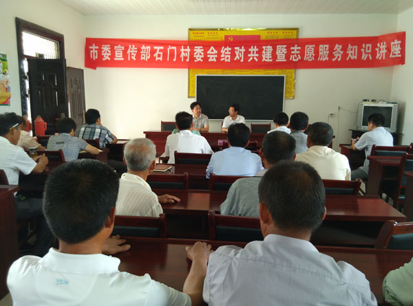 6月25日上午,市委宣傳部黨支部志愿服務(wù)隊(duì)來(lái)到石門村委會(huì)和柳集社區(qū)的10戶老黨員家里進(jìn)行慰問(wèn),送去了價(jià)值5000余元的圖書和社會(huì)主義核心價(jià)值觀宣傳品。石門村委會(huì)的陳學(xué)周今年80歲,是石門村委會(huì)的一位老干部、老黨員,為村委會(huì)服務(wù)幾十年,現(xiàn)在他本人腿部殘疾,完全喪失勞動(dòng)能力,但從未向社區(qū)、向組織提出任何要求。志愿者代表祝他節(jié)日快樂(lè),并為他送上慰問(wèn)金和慰問(wèn)品,同時(shí)還囑咐他要注意身體,村委會(huì)需要廣大老黨員的寶貴有經(jīng)驗(yàn)和意思。陳學(xué)周老人對(duì)志愿者一行的慰問(wèn)表示忠心感謝,對(duì)新農(nóng)村的全面建設(shè)也充滿信心。