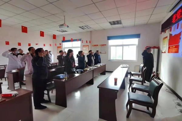 78歲的老黨員王繼述精神矍鑠,聲情并茂地向前來參加黨史學習教育的黨員干部講述身邊平民英雄的戰斗故事,帶領大家重溫了那段驚心動魄的偉大戰役,大家接受了一場生動的黨史和愛國主義教育。在王繼述的帶領下,大家重溫入黨誓詞,聲音鏗鏘有力,每一位黨員心潮澎湃,精神振奮。