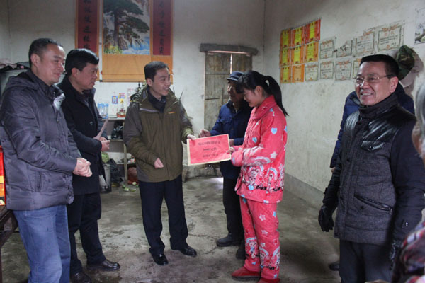 元月30日,在春節來臨前夕,市氣象局主要負責同志一行冒著雨雪深入鳳凰山街道東塘社區、銀屏鎮呂婆村,開展結對走訪慰問活動。在地方黨委和政府領導的陪同下,走訪慰問基層老黨員、困難群眾,詢問他們的健康情況、生活狀況以及生活中遇到的實際困難,送去慰問金和慰問品,并向他們致以新春的祝福,送去黨和政府及氣象人的關懷和溫暖。活動中專程向困難家庭周婉婷同學獻上新年愛心圓夢助學金2000元,并鼓勵她刻苦學習、早日圓夢。(張曉明)