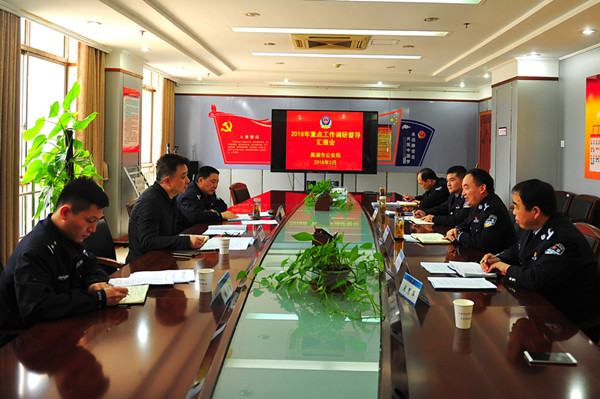 程俊一行首先參觀了市公安局警營文化中心,步巡了百米黨建長廊。在隨后召開的調研匯報會上,李加權從貫徹落實合肥公安工作會議精神、今年重點工作思路和措施以及“五位一體”抓黨建等方面作了匯報,重點介紹了該局通過表單式量化考核與民警值勤津貼、加班補助發放實行捆綁,從而達到“正風氣、提精神、促工作”等方面的具體做法。