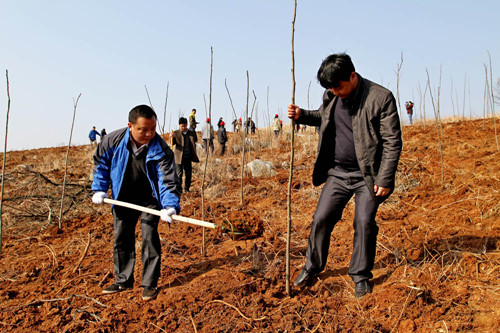 義務(wù)植樹(shù),既綠化了荒山,也培養(yǎng)了全體黨員干部的環(huán)保意識(shí)。夏閣鎮(zhèn)的黨員志愿者們以自己的實(shí)際行動(dòng)倡導(dǎo)綠色,倡導(dǎo)低碳生活。(王戴君)