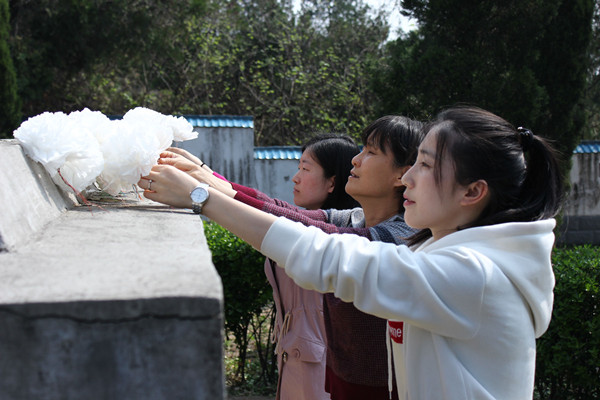 大家在列隊瞻仰烈士紀念碑后行默哀禮,莊嚴地為長眠在這里的45名革命烈士獻上一朵朵白花,向烈士們表達了崇敬緬懷之情,愿先烈們不朽的英名與山河共存、與日月同輝。