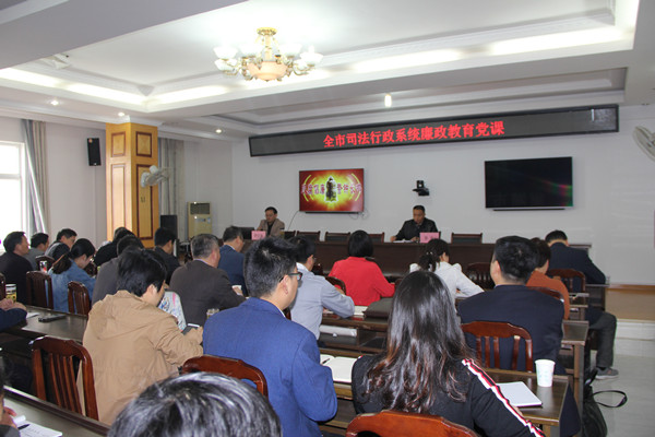 日前,市司法局開展廉政教育黨課,市司法局全體班子成員、各司法所所長、科室(中心、處)負責人及機關全體人員參加會議。