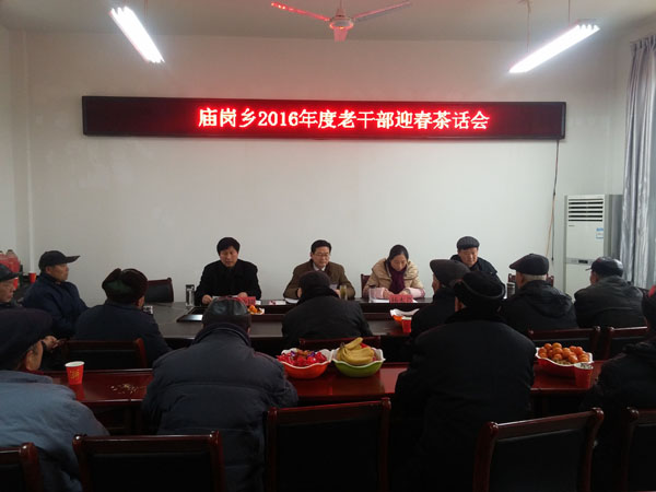 1月30日上午,廟崗鄉召開2016年度老干部迎新春茶話會,鄉黨委主要負責同志、老齡委主任和離退休老干部歡聚一堂,歡慶新春佳節,共述濃情友誼,暢談下新發展大計。