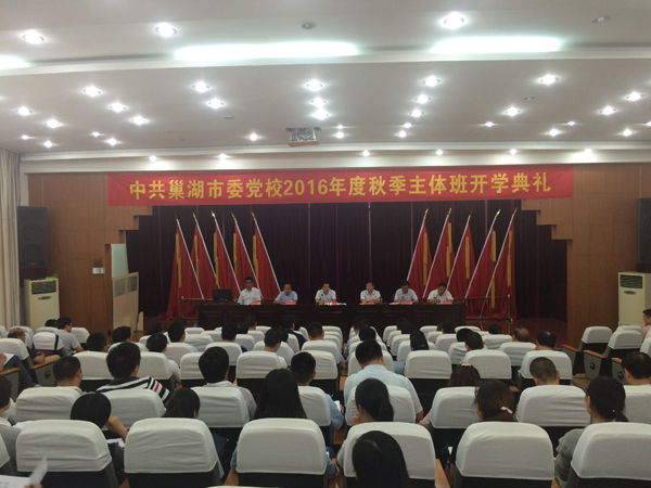 9月18日上午,巢湖市2016年秋季主體班在市委黨校舉行開班典禮。市委副書記、黨校校長許漢生出席并作首場輔導報告。市委黨校常務副校長祝繼舟主持開班典禮,市紀委、市委組織部、市委宣傳部、市委統戰部相關負責人出席了開班典禮。