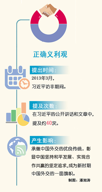 2013年9月,外交部長王毅在人民日報發表《堅持正確義利觀 積極發揮負責任大國作用》一文時引述了習近平對“正確義利觀”的重要闡述: