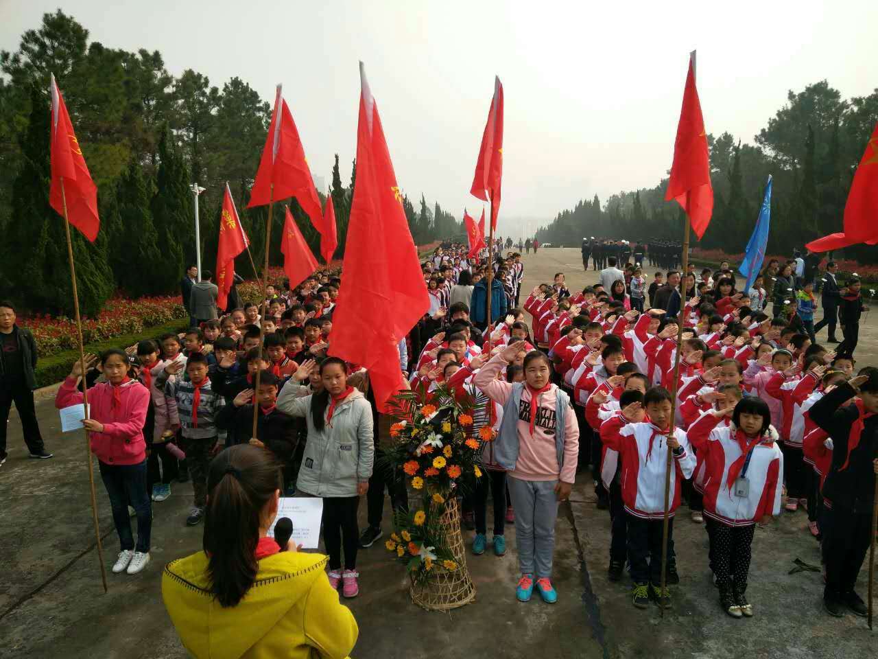 綠樹環(huán)繞的南山烈士陵園顯得格外莊嚴(yán)肅穆,志愿者和老師及同學(xué)們肅立在革命烈士紀(jì)念館前,靜靜地聆聽輔導(dǎo)員對烈士事跡的介紹,六(1)班學(xué)生林曉雅代表全體學(xué)生在革命烈士紀(jì)念館前表明自己堅(jiān)定的立場:立志努力學(xué)習(xí),珍惜今天美好的幸福生活!德育主任李巢波對同學(xué)提出更高的要求:希望同學(xué)們好好學(xué)習(xí),為中華之崛起而讀書!接著,全體師生和蒲公英志愿者在烈士紀(jì)念碑前敬獻(xiàn)花圈,寄托了對烈士的哀思。最后,志愿者和同學(xué)們還在烈士墓前莊嚴(yán)宣誓:“緬懷先烈,繼承遺志。人民為先,祖國至上。誠實(shí)勇敢,自尊自強(qiáng)。奮發(fā)有為,誓作棟梁。振興中華,再創(chuàng)輝煌。”