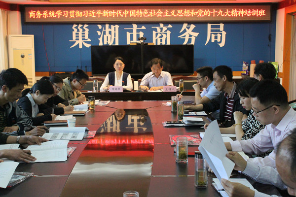 在接下來的培訓中,全市商務系統將緊緊圍繞習近平新時代中國特色社會主義思想和黨的十九大精神,采取專題講座、支部研討、座談交流、黨員自學、理論測試、撰寫心得等形式,組織全市商務系統干部職工讀原著、學原文、悟原理,完整準確地領會黨的十九大提出的新思想、新論斷、新要求,深刻領會習近平新時代中國特色社會主義思想的精神實質和豐富內涵,引導全體干部把學習成效轉化為推動商務工作的實際行動,努力在新時代開創新局面,創造新業績,實現新發展。(王彩霞)