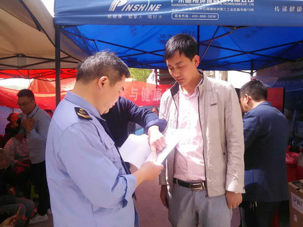 當日柘皋市場所執法人員接到群眾投訴后,立即聯合鎮政府食安辦、派出所、城管執法部門趕赴現場調查取證?;顒蝇F場經銷商針對村鎮地區老年人為主的消費群體,抓住老年人體弱易病渴望長壽的心理,采取夸大效果的宣傳方式,誘導居民購買商品,不僅誤導消費,給居民帶來經濟損失;而且導致不正當競爭,危害社會秩序,破壞社會風氣。