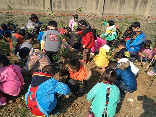 欄桿集鎮中心幼兒園開展“我給地球添綠色”植樹活動[圖]
