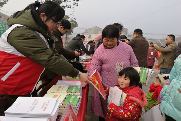 市婦聯認真落實市委宣傳部統一部署,組織巾幗志愿者開展法律法規咨詢志愿服務活動。市婦聯在活動現場設立維權咨詢點和宣傳服務臺,為現場群眾送上法律、文化和政策,現場發放《婚姻法》、《婦女權益保障法》、《未成年人保護法》、《反家庭暴力法》、《最美家庭故事》、《親子百問》、婦女兒童發展規劃宣傳冊、宣傳圍裙等材料和用品2000多份,活動受到了群眾的喜愛和歡迎。此次“三下鄉”活動中,市婦聯還捐款5000元。