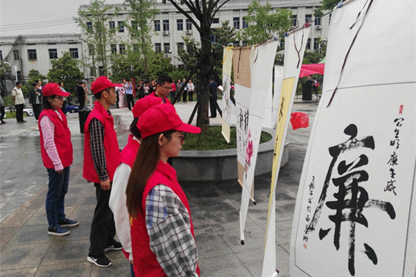此次活動既有書畫展又有廉政誦讀,書畫展出的作品有廉詩、廉對、廉畫,共計展出書法、繪畫等50多件優秀作品,每幅都畫面精美、富含神韻,令人贊不絕口。大家在觀看廉政書畫展的同時,通過具有勸誡寓意的詩句、富含象征意義的山水花鳥,展示了一個激濁揚清、令人警醒的廉政文化意境。而巢湖市演講朗誦學會的老師們則以飽滿的精神狀態,聲情并茂地朗誦了《廉潔之歌》《烈烈清風》《光的贊歌》三首廉政詩歌,深刻詮釋了廉政文化的主題和內涵,贊頌了新時期涌現出來的先進典型和勤廉動人的光輝事跡,促進了社區廣大黨員干部的廉潔自律性的提高,進一步推進了社區廉政文化建設。