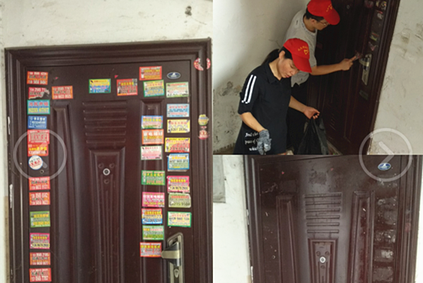 七、黨員活動日開展“除癬”行動。7月7日,是北大街社區黨員活動日,恰逢創城工作進入攻堅階段,社區結合創城工作開展了黨員志愿活動,本次次活動的主題:加大“除癬”力度,共創文明社區。參加本次活動的共有20余名黨員志愿者,志愿者們上午從8點開始,直到下午6點,共清除了9棟17個單元樓道的“牛皮癬”。當日,天氣非常炎熱,汗水濕透了黨員志愿們的衣背,他們堅持把既定的工作任務完成,用實際行動踐行著“兩學一做”,向黨的生日獻禮。(周瓊)