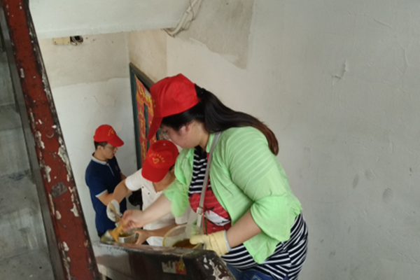 本次黨員活動日共有20余名黨員參加,志愿者們上午從8點開始,直到下午6點,共清除了9棟17個單元樓道的“牛皮癬”。當日,天氣非常炎熱,汗水濕透了志愿者們的衣背,志愿者堅持把既定的工作任務完成。