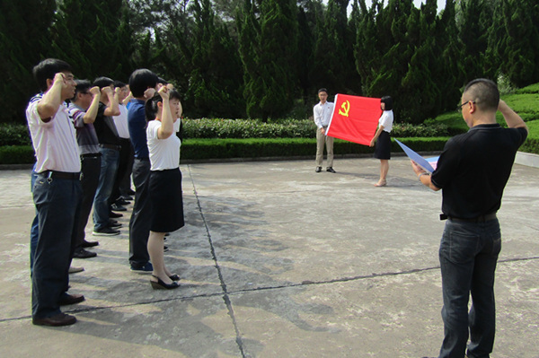 上午8:30,參加活動的同志人人佩戴黨徽,個個著裝整齊,準時到達南山烈士陵園。活動共安排四項議程:向革命烈士獻花籃、向革命烈士默哀一分鐘、重溫入黨誓詞、全體人員繞紀念碑一周瞻仰紀念碑。在莊嚴的革命先烈紀念碑前,陵園管理處的同志對陵園史跡及園內先烈人物作了簡要的介紹,大家聆聽、矗立、瞻仰,對先烈的敬仰之情油然而生。
