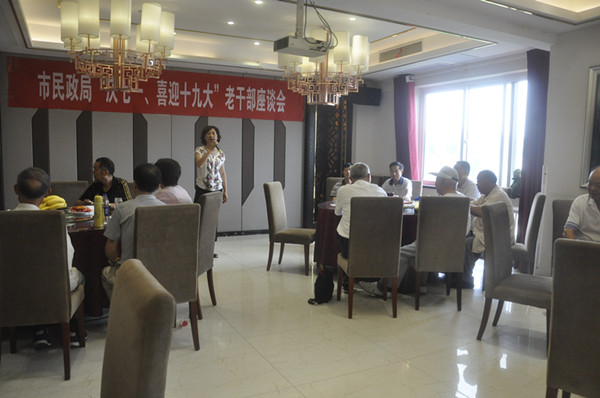 參觀活動結束后,組織召開了“慶七一、喜迎十九大”老干部座談會。民政局黨組書記、局長朱蓮芳參加并發表講話,朱局長首先向老干部們表達了親切的問候,然后匯報了民政局2017年的重點工作。老干部們踴躍發言,紛紛表達了對民政局工作的肯定,積極為我市民政事業的發展獻言獻策。