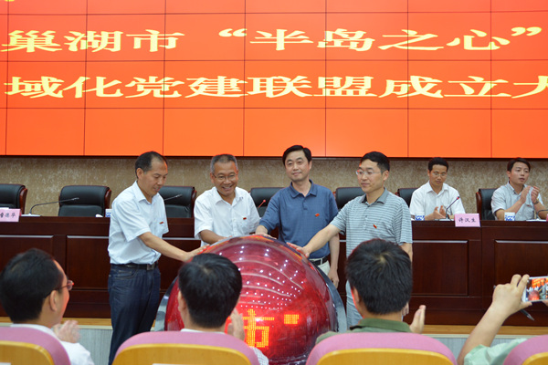 6月30日下午,巢湖市“半島之心”區(qū)域化黨建聯(lián)盟成立大會召開,省委組織部干部教育處處長、安徽組干學院院長王林武,省委組織部農(nóng)村組織處處長張明,合肥市委常委、巢湖市委書記胡啟生,合肥市委組織部農(nóng)村組織處處長詹德華,巢湖市領導朱心剛、王勁等出席會議。會議由巢湖市委副書記許漢生主持。胡啟生強調(diào),要以“半島之心”區(qū)域化黨建聯(lián)盟為契機,不斷開創(chuàng)我市基層黨建工作新局面,為奮力實現(xiàn)“安徽爭五強、全國進百強”目標,加快建設“明珠之城”夯實黨建之基,以更加優(yōu)異的成績迎接黨的十九大勝利召開。