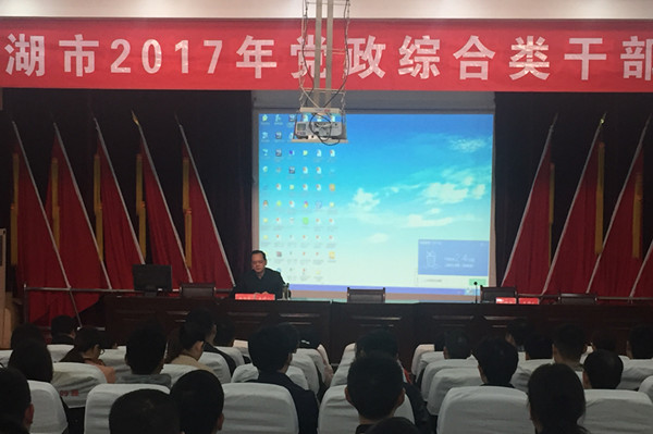 巢湖市第24期中青班學員、黨政綜合類干部培訓班及市委黨校全體教學人員共100多人聆聽了此次專題報告。(何曉林)