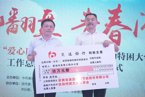 巢湖市舉辦“愛心圓夢大學”2018年扶助特困大學生工作總結會暨助學金發放儀式