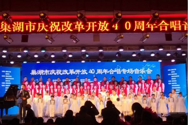 12月23日,巢湖市音協、巢湖市百靈鳥合唱藝術團慶祝改革開放四十周年合唱音樂會在原居巢區政府會場舉行。300多名市民共同享受了一場謳歌新時代、展現人民群眾的幸福生活的精彩演出。市委常委、宣傳部長李萍,國家一級指揮陳禮琯、安徽省合唱協會主席徐俊松以及市文廣新局、文聯、婦聯等單位負責人出席。