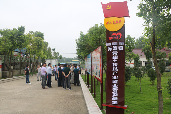 考察團(tuán)一行參觀了鎮(zhèn)黨建+扶貧產(chǎn)業(yè)就業(yè)示范基地、扶貧產(chǎn)業(yè)園、鎮(zhèn)(村)扶貧工作站(室)。蘇灣鎮(zhèn)負(fù)責(zé)人詳細(xì)介紹了脫貧攻堅(jiān)基本情況和“扶志、扶智、扶技”、主攻產(chǎn)業(yè)就業(yè)總體思路。