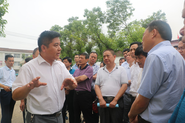 6月23日上午,桐城市孔城鎮(zhèn)黨委書記率該鎮(zhèn)領(lǐng)導(dǎo)班子成員、扶貧辦工作人員,村書記、扶貧專干等50余人深入蘇灣鎮(zhèn)實(shí)地考察交流脫貧攻堅(jiān)工作。巢湖市副市長(zhǎng)梁善斌,市扶貧辦、蘇灣鎮(zhèn)負(fù)責(zé)人等陪同考察。