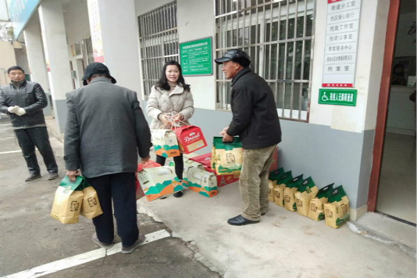1月29日,望城社區巢湖市金魁食品加工有限公司支部書記周南云同志,為讓貧困群眾過上一個溫暖、祥和的春節,主動為社區10戶貧困戶送上大米、甜品和自家公司生產的“金魁”食品。每遞一份禮品時一并送上溫馨祝福,“這是我公司支部的一點點心意,希望你們收下,祝全家生活愉快,相信在黨和政府的領導安排下大家的日子會一年更比一年好!”