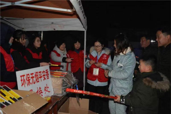 活動現場,黨員志愿者分片值守,有序開展安全教育和文明勸導志愿宣傳活動,當天下午發放《致廣大居民的一封信》、張貼《關于正月十六晚“過太平橋”的安全通告》、倡導廣大居民文明、平安、健康“過太平橋”;晚上志愿者在鎮政府設置了5個“環保無煙香置換點”引導群眾使用環保無煙香火代替劣質有煙香火,維護群眾健康。