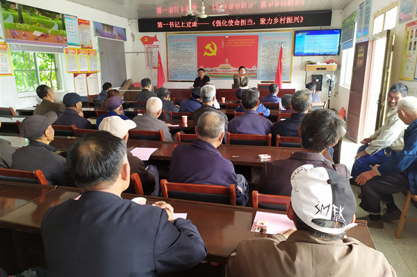 會上村黨委書記馬從海領學《關于建立黨支部積分考核和黨員積分管理制度的實施方案》《關于在全鎮推行黨員積分量化管理工作的意見》《中國共產黨支部工作條例(試行)》等,針對當前黨員意識不強、黨員身份不亮、黨員隊伍不硬現象問題,宣讀闡釋了黨章黨規中關于黨員活動、“三會一課”的若干規定,再次強調了黨員隊伍建設的組織紀律性,并結合村發展實際,細化明確了23名無職黨員設崗定責。隨后,村黨委第一書記程序作了題為《強化使命擔當,聚力鄉村振興》黨課輔導。