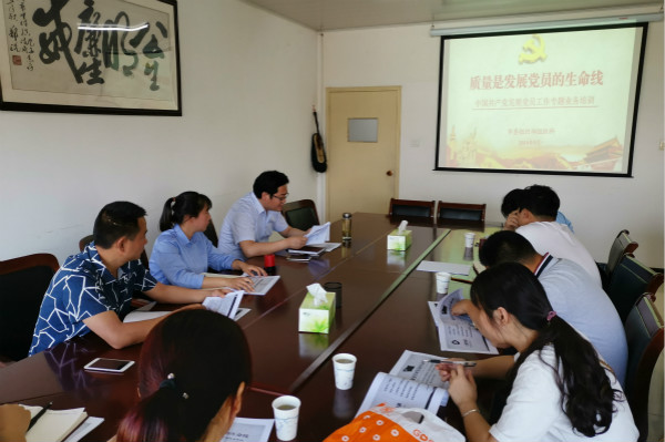 會議首先鎮組織干事韋婷婷向各村(居)黨務工作者講解黨員發展的步驟和流程,并指出在發展黨員過程中的各個階段的時間節點以及可能會出現的問題,強調各黨組織要嚴格按照《中國共產黨發展黨員細則》發展黨員。之后,組織委員張志鋒帶領大家學習《2019年中垾鎮黨建工作要點》。