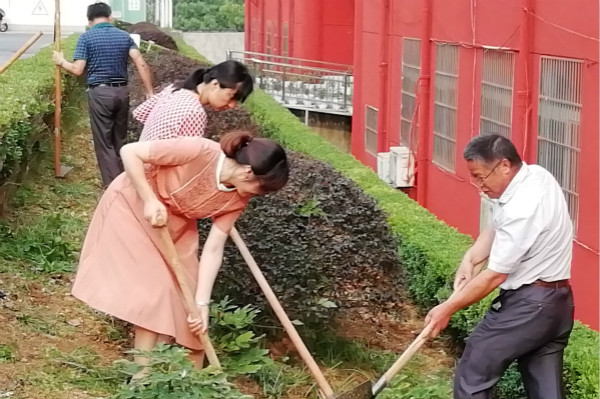 巢湖市六中:黨員帶頭清除花圃雜草美化校園環境