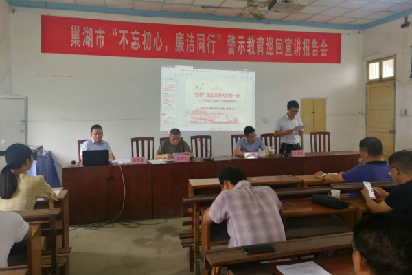 近日,巢湖市“不忘初心,廉潔同行”警示教育巡回宣講報告會在夏閣鎮(zhèn)召開。報告會由市紀委常委李頂龍授課宣講,該鎮(zhèn)機關(guān)全體干部、各基層所站負責(zé)人、村兩委主要負責(zé)人120余人參會。