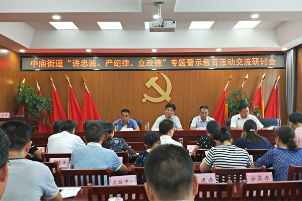 7月13日,中廟街道舉辦新時代傳習所“講忠誠、嚴紀律、立政德”專題警示教育活動宣講會,街道全體機關干部、街直單位負責人和村居干部參加會議,會議由中廟街道黨工委書記、辦事處主任陳松主持。
