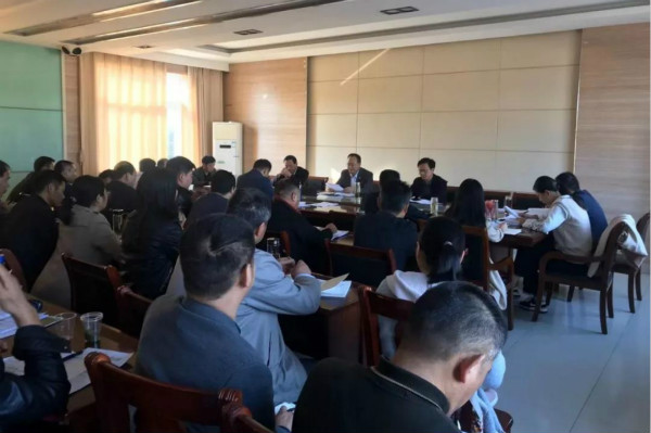 首先,會議集中學習了《李錦斌同志在阜陽市調研座談會上的講話》、《習近平關于“不忘初心、牢記使命”重要論述選編》部分內容。
