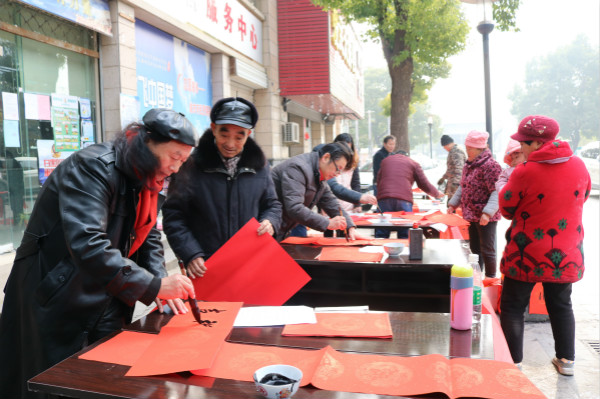 鳳凰山街道:巢湖市書法家進社區送春聯