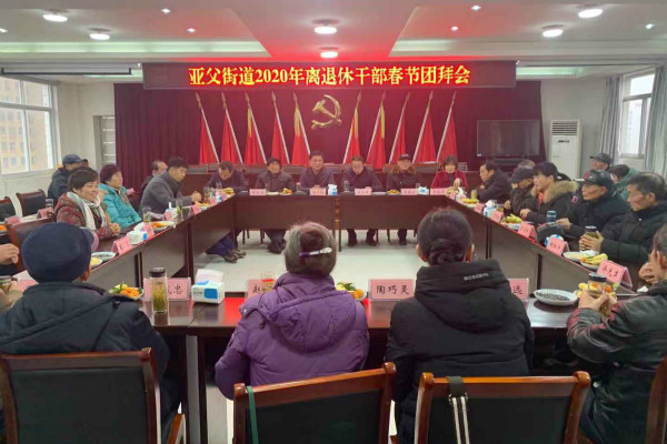 1月17日上午,亞父街道召開2020年離退休老干部春節團拜會。街道黨政班子成員、離退休干部、街道老干黨支部人員參加了團拜會。會議由街道黨工委副書記潘良基主持。