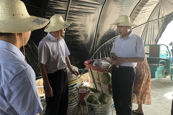 8月10日上午,安徽省人大副主任、致公黨省委會主任謝廣祥率隊,來到巢湖市中垾鎮濱湖村大棚蔬菜扶貧產業園進行調研。合肥市副市長吳春梅、巢湖市委副書記許漢生、巢湖市政府副市長周曉飛、中垾鎮黨委書記尹明等陪同調研。