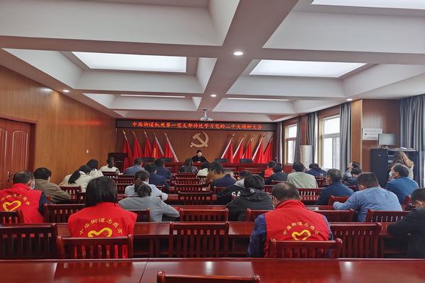 10月28日,中廟街道黨工委組織各村(社區)黨組織、街道機關及街直單位黨支部、非公企業黨支部召開專題會議傳達學習黨的二十大精神,在黨員干部中掀起學習黨的二十大精神“熱潮”。