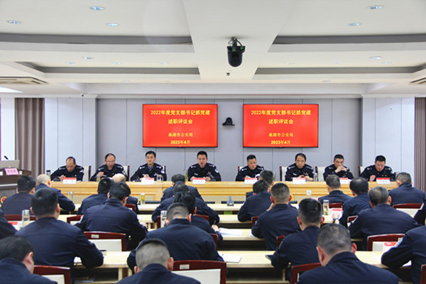 會上,政治處、治安大隊、城北派出所等7個黨支部書記為代表圍繞學習貫徹黨的二十大精神、落實黨建工作責任制、加強基層黨支部標準化建設、完成合肥市公安局、巢湖市委部署的黨建工作重點任務情況進行了述職,其他黨支部書記進行書面述職。全體與會人員對各黨支部書記抓黨建履職情況進行現場評議。