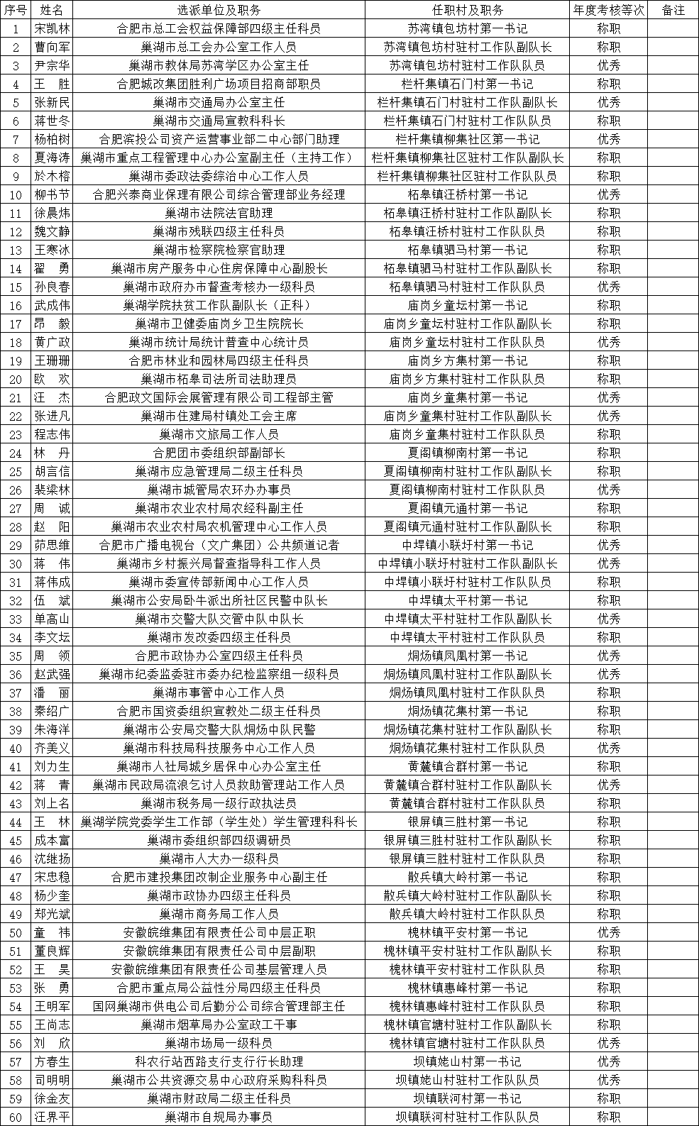 關于巢湖市第八批選派干部2021年度 考核結果的公示