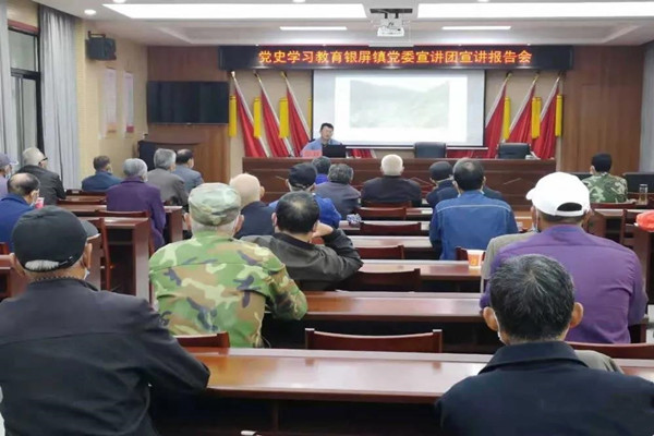 黨史學習教育銀屏鎮黨委宣講團成員,鎮黨委委員、宣傳委員、統戰委員江川同志作了《中國共產黨百年輝煌》專題宣講報告。江川以中國共產黨在新民主主義革命時期完成救國大業、在社會主義革命和建設時期完成興國大業、在改革開放和社會主義現代化建設新時期推進富國大業、在中國特色社會主義新時代推進并將在本世紀中葉實現強國大業為主線,把黨的百年歷程與重大歷史事件、黨的重要會議等緊密結合,回顧了中國共產黨百年不懈奮斗史、理論探索史和自身建設史,深入淺出闡述了中國共產黨百年經歷的四個歷史時期和輝煌成就。