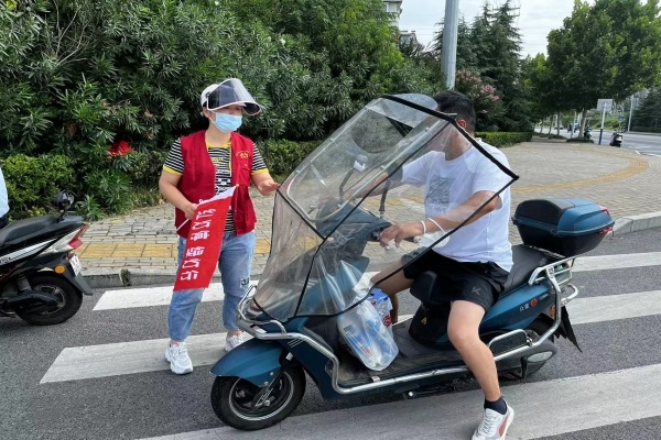 活動中,志愿者在社區重點路口對駕乘摩托車、電動車不戴安全頭盔的人員進行正面宣傳和引導,細致地對他們講解了“一盔一帶”安全知識,引導騎乘人員養成“戴好頭盔”的良好習慣,同時務必遵守交通規則,做到不闖紅燈、不違規載人載物、不走機動車道,使“安全出行”理念深入人心。