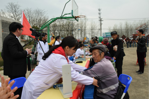 活動現場雖然下著小雨,但小聯圩村民們參與的熱情卻很高漲。“送衛生”服務臺前人頭攢動,圍滿了前來測量血壓、血糖的群眾,來自醫學院的志愿者老師學生們親切的提供著服務,一一解答他們咨詢的健康問題。這邊熱鬧,那邊也精彩,村部文化大舞臺前不時爆發出陣陣掌聲,“街舞”、“瑜伽”、“武術”,各種各樣活力四射的表演給村民帶來了別樣的新鮮體驗,特別是“快板說扶貧”,學生們用青春洋溢的表演將黨的扶貧政策給農村、農民帶來的改變娓娓道來,村民們邊鼓掌邊說“看著這些孩子們的演出,感覺自己也年輕了不少呢,這種活動辦得好啊,以后多多來咱們村啊!”活動現場還舉行了贈書活動。