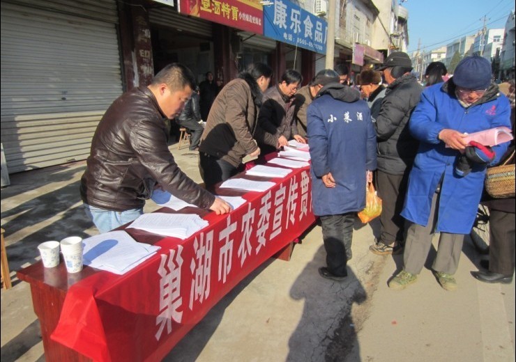 2012年12月31日下午,巢湖市農(nóng)委一行來到烔煬鎮(zhèn)開展《農(nóng)業(yè)技術(shù)推廣法》宣傳服務(wù)活動(dòng)。烔煬鎮(zhèn)農(nóng)業(yè)綜合服務(wù)站人員積極參與配合。宣傳服務(wù)活動(dòng)通過在人流密集區(qū)設(shè)立展臺(tái),現(xiàn)場(chǎng)接受咨詢并發(fā)放實(shí)施宣傳材料的方式向過往群眾宣傳介紹《中華人民共和國(guó)農(nóng)業(yè)技術(shù)推廣法》,并同時(shí)推廣介紹小麥、油菜等農(nóng)作物的冬季田間管理技術(shù)和測(cè)土配方施肥技術(shù)等農(nóng)技知識(shí),獲得群眾一致好評(píng)。圖為宣傳活動(dòng)現(xiàn)場(chǎng)。